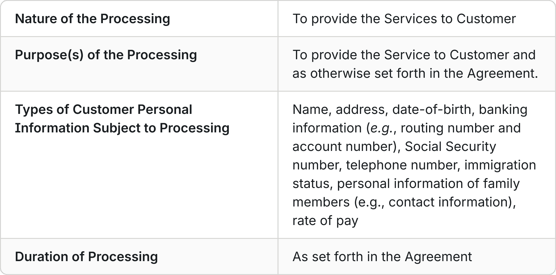 Applicability - This U.S. DPA applies only to Seso’s Processing of Customer Personal Information for the nature, purposes, and duration set forth in Appendix A.
